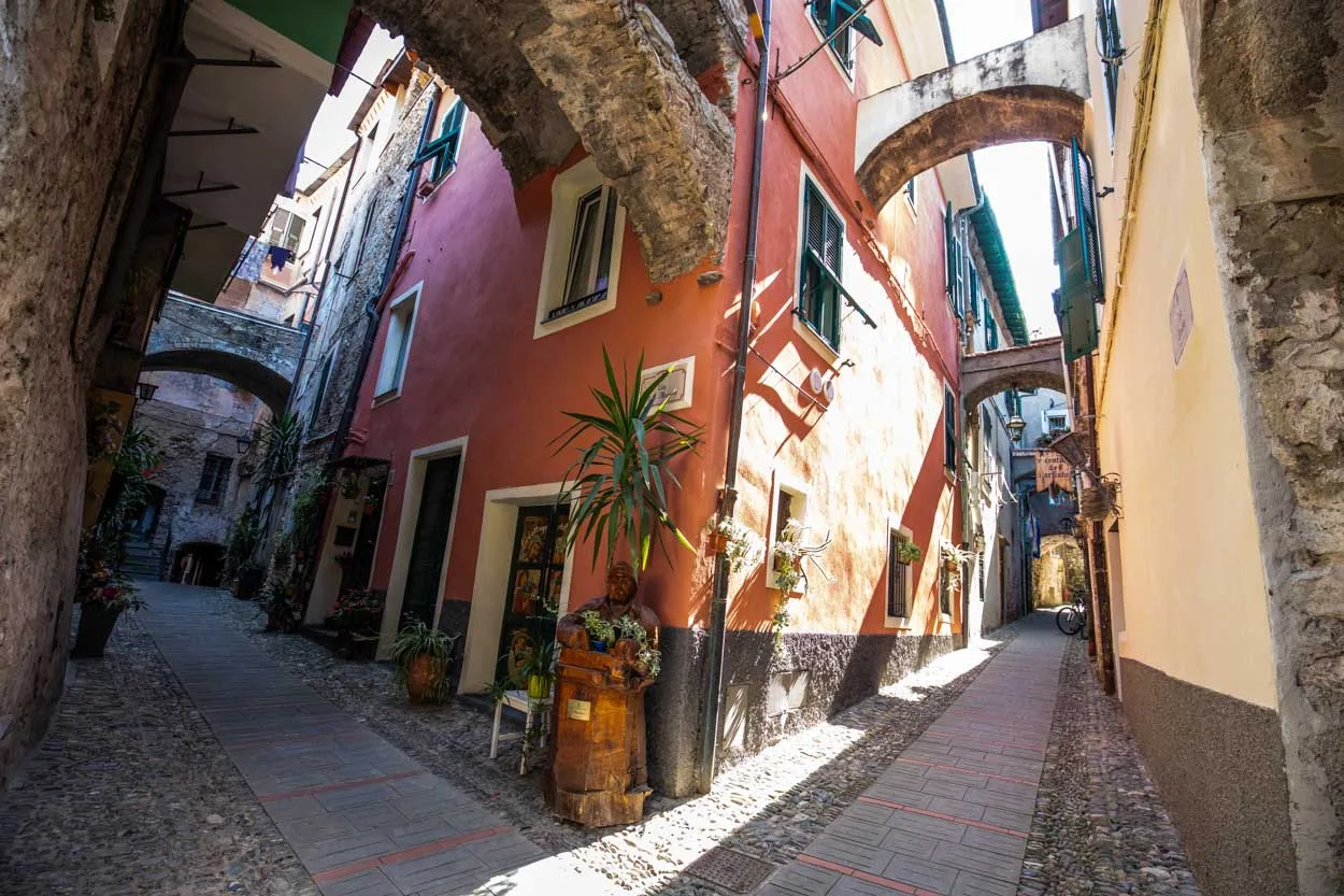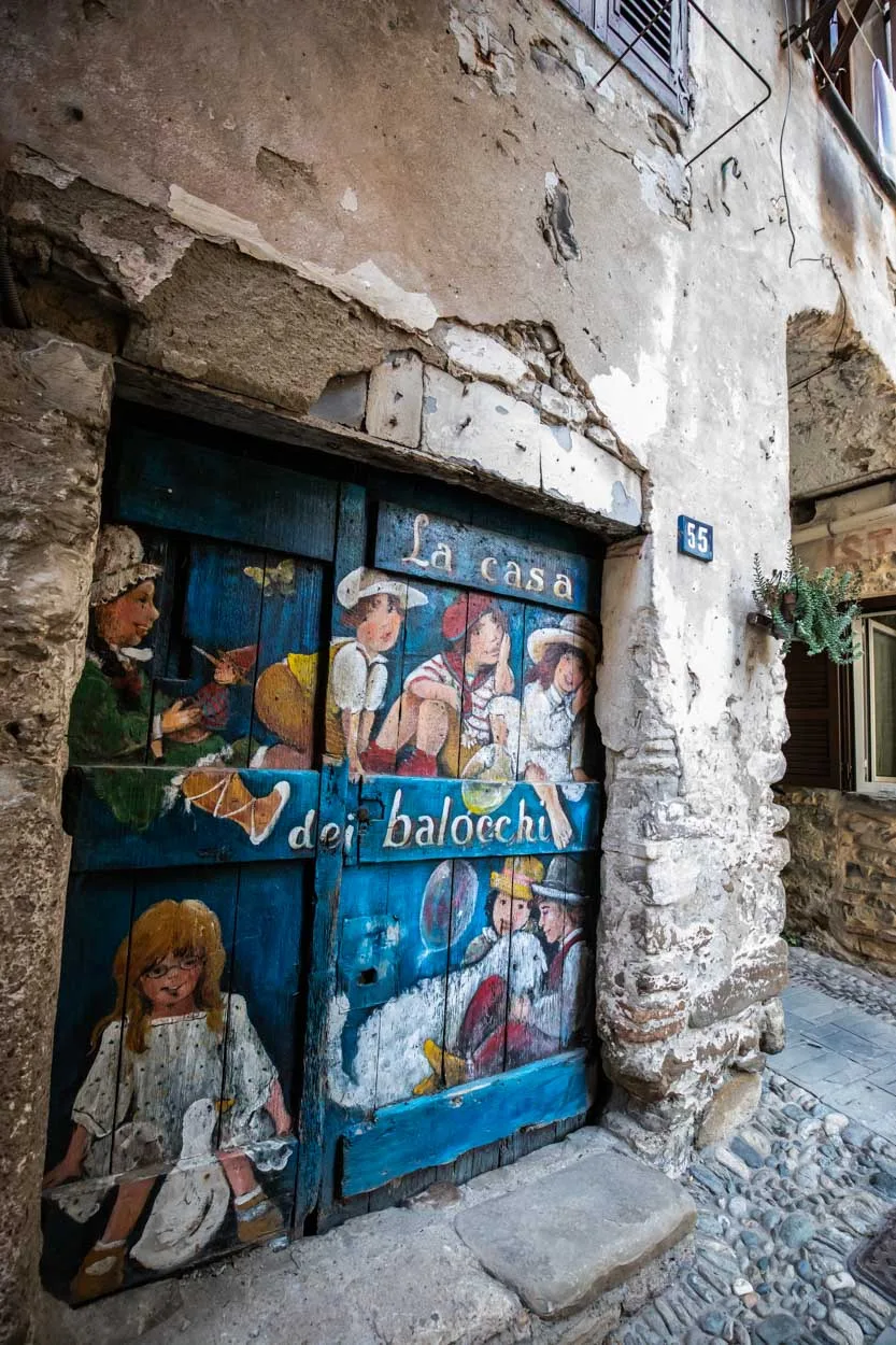 San Biagio della Cima, Soldano e Vallecrosia, i tre paesi sono uniti dallo scorrere del torrente Verbone che con il suo passaggio ha disegnato la valle lasciando all'uomo il compito di modellare il territorio con i muri in pietra per coltivare la vite, i fiori e gli ulivi. Siamo nella patria del celebre vino Rossese, coltivato eroicamente, e delle rose, adesso affiancate da mimose e fronde ornamentali. La visita ci porta alla scoperta di Vallecrosia alta, un borgo ben tenuto, decorato dalle porte dipinte di Imelda Bassanello e dalle sculture lignee di Barba Brisiu che rappresentano le attività tradizionali. A San Biagio il percorso attraversa i luoghi cari allo scrittore Francesco Biamonti, autore di "Vento largo", un paesaggio letterario da scoprire anche in MTB o facendo trekking, e a Soldano scopriamo il borgo fortificato, le chiese e la storia del Rossese, prima DOC della Liguria.